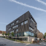 Der Neubau hat die Form von zwei ineinander verschachtelten Quadraten in deren Mitte Lichthöfe angeordnet sind. Die Ausführung erfolgt in Stahlbetonbauweise als Skelettbau mit punktgestützten Decken. Eine Besonderheit ergab sich durch die Tatsache, das der Verbindungsbau mit nur einem Untergeschoß vorab erstellt werden musste. Die schlechten Baugrundverhältnisse erforderten eine Pfahlgründung in deren Zuge eine Bohrpfahlwand zum Haus 2 hergestellt wurde, das mit zwei Untergeschossen erst danach errichtet werden sollte. In Teilbereichen diente die Bohrpfahlwand gleichzeitig als Gründungselement für den Verbindungsbau.