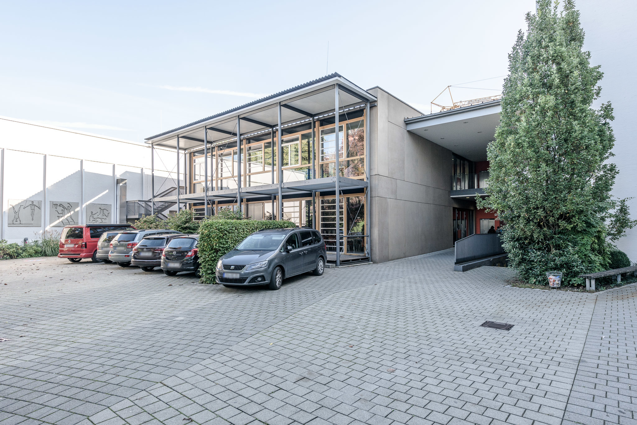 Um im Erdgeschoss eine Aula realisieren zu können, musste die Decke über EG über 16 m frei spannen. Dies ermöglichte ein im OG geschickt in den Innenwänden versteckter sog. Stahlvierendeelträger.